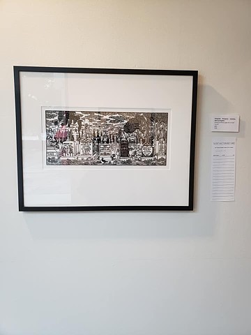 The Tonantzin Society and Artemio Rodriguez came into partnership by way of the Mulvane Art Museum and the Beach Museum. Rodriguez was part of the Beach Museum’s Fronteras exhibit in 2017, and the Tonantzin Society was intrigued by his printmaking work and the traveling Grafico Movil. At the same time, Rodriguez sought to raise money for his community-based Biblioteca del Libro Ilustrado (Library of Illustrated Books) located in Patzcuaro, Mexico. Proceeds from the exhibition went directly to the building of the Biblioteca del Libro Ilustrado.